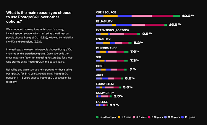 PostgreSQL has long been the favorite database in HackerNews & StackOverflow. Many new open-source projects default to PostgreSQL as their primary, if not only, database choice. And many new-gen companies are going All in PostgreSQL.